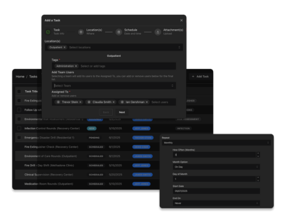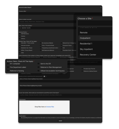 Comprehensive Behavioral Healthcare Compliance Management Software The Simplifyance Platform automates tasks, centralizes data and streamlines reporting — drastically simplifying compliance for Behavioral Healthcare. Why use a platform to manage compliance tasks? Cost- & Time-Savings Reduce compliance activities by an average of 50%, reducing overall costs and keeping your team focused on what matters most Organizational Continuity If key staff leave your organization, new staff are seamlessly trained and educated, whether your next survey is years or days away Visibility & Accountability Leadership has clear visibility into the organization’s compliance health grade and everyone understand what needs to be done “We’ve been able to get rid of all of the paper forms for incident reporting. It’s now all electronic and a lot easier to track — any staff member in our system can do it. That’s just incident reporting. Safety task drills, training, and planning for all of our locations are now standardized and accessible from Simplifyance’s single source tool.” Travis Simmons | Director of Operations, Valiant Living PLATFORM FEATURES All Your Compliance Tasks in One Easy-to-Use Platform Incident & Medication Error Reporting Report incidents and medication errors using our built-in incident management system to ensure proper documentation and follow-up. Anyone can report an incident without the need to login Automatic creation of follow-up tasks increases accountability and proper documentation Conditional logic gives providers the ability to route incident reports to selected leaders Incident & Medication Error Follow-Up Incidents and medication errors are automatically triaged to the appropriate department leader, ensuring accountability and proper documentation to show regulators. Easy-to-navigate reports can be filtered based on severity Data is automatically aggregated Reports can be generated from any of the digital forms to track trends and recurring issues Ready to shave 50% off your time spent on compliance? Task Management Our integrated task management system ensures that all compliance-related tasks are completed and documented. Schedule upcoming tasks at the required cadence so nothing is missed Ready-to-start tasks and activities required for accreditation are built into the system New tasks are seamlessly created and assigned to users Leadership has clear visibility into task completion, increasing accountability Tasks can be re-assigned if responsibilities change, or turnover occurs Resource Library The Resource Library houses all of your organization’s active policies, procedures, and plans, and comes pre-packed with templates, plans and procedures required by regulators. Serves as a single repository for all organization-specific sensitive information Easy search and navigation based on keywords and/or departments Aggregated Data Reporting Our Reports section enables aggregation of the incident report data into easy to configure charts and graphs. Identifying patterns and trends by visualizing data so your team can spot recurring issues like increases in medication errors and client incidents Enable proactive decision making by forecasting issues and addressing them before they escalate Demonstrate a meaningful use of data for quality improvement to organizations like The Joint Commission and CARF. Keep staff accountable and engaged with highly visual data that highlights trends, resulting in greater quality care and safety for patients Encourage data-based decisions without the need to dig through stacks of paper or spreadsheets, resulting in better decisions and hundreds of hours saved “We save a tremendous number of hours. We use the solution to track every task and every form we need, whether tasks need to be completed on a weekly, monthly, biannual to annual basis, and all time frames in between. The gap between our old task management and Simplifyance has truly revolutionized our reporting.” Ian Ostholthoff, Operations Manager, Northstar Transitions Ready to simplify compliance?Our team is here to support you every step of the way.